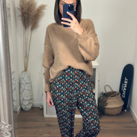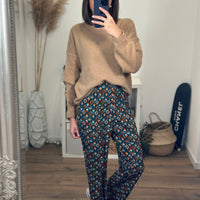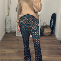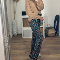 PANTALON IMPRIME BLEU ET CORAIL OLGA