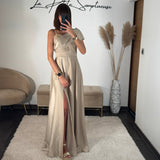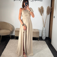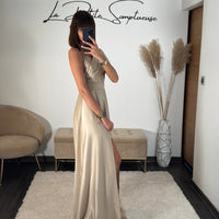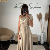 ROBE SATIN BEIGE CLASSY - La Petite Somptueuse