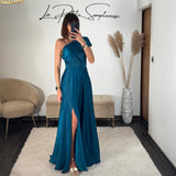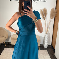 ROBE SATIN BLEU CLASSY - La Petite Somptueuse