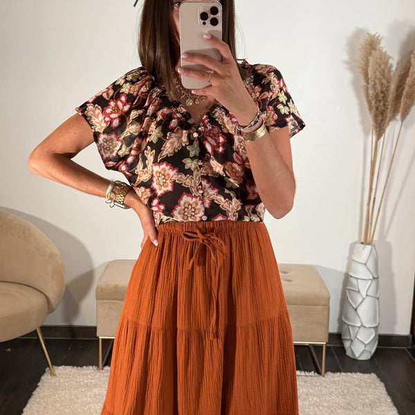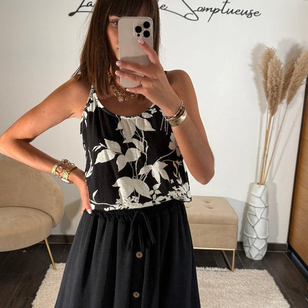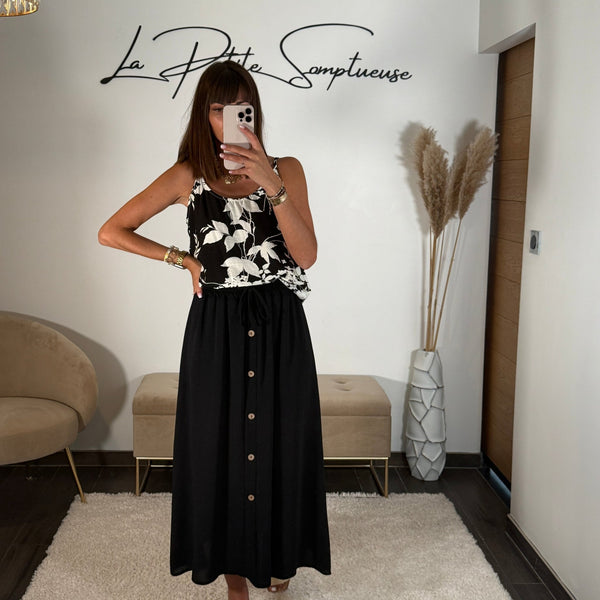 ROBE SATIN FLOWER NOIRE ZANYA - La Petite Somptueuse